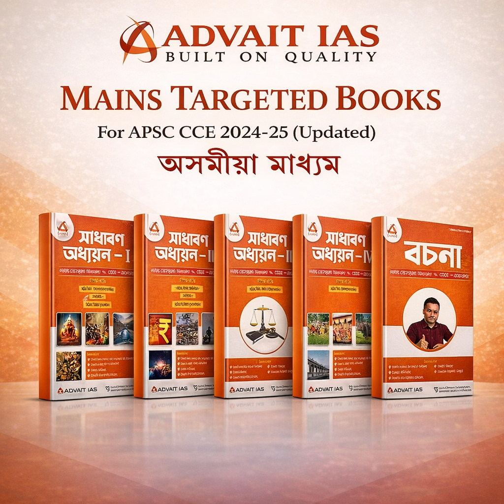 Advait IAS presents a complete set of Mains Targeted Books specially designed for APSC Combined Competitive Examination (CCE) Mains. These books are written in Assamese Medium and cover all General Studies papers along with Essay preparation.